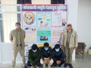 इनके खिलाफ शांति भंग करने के आरोप में वैधानिक कार्रवाई की जा रही है।मसूरी पुलिस द्वारा कानून व्यवस्था बनाए रखने के लिए दो अलग-अलग मामलों में त्वरित और सख्त कार्रवाई की गई। एक ओर जहां यूनियन चर्च क्षेत्र में रेंटल स्कूटी को लेकर हुए झगड़े में तीन युवकों को गिरफ्तार किया गया, वहीं दूसरी ओर ट्रैफिक नियमों की अवहेलना करने वालों पर चालान व वाहन सीज की कार्यवाही की गई।